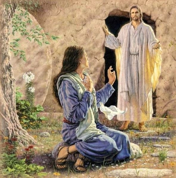 Widzimy Marię Magdalenę, która pomyliła Jezusa z ogrodnikiem...